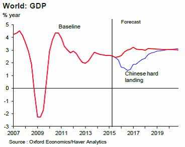 Across emerging markets as a whole, growth slows to 2.1% in 2016, almost as weak as seen in the wake of the global financial crisis, and also advanced economies are not immune: GDP growth in 2016 drops below 2% in the US and 1% in the Eurozone (a loss of 0.5% of GDP each), rather than picking up pace.
