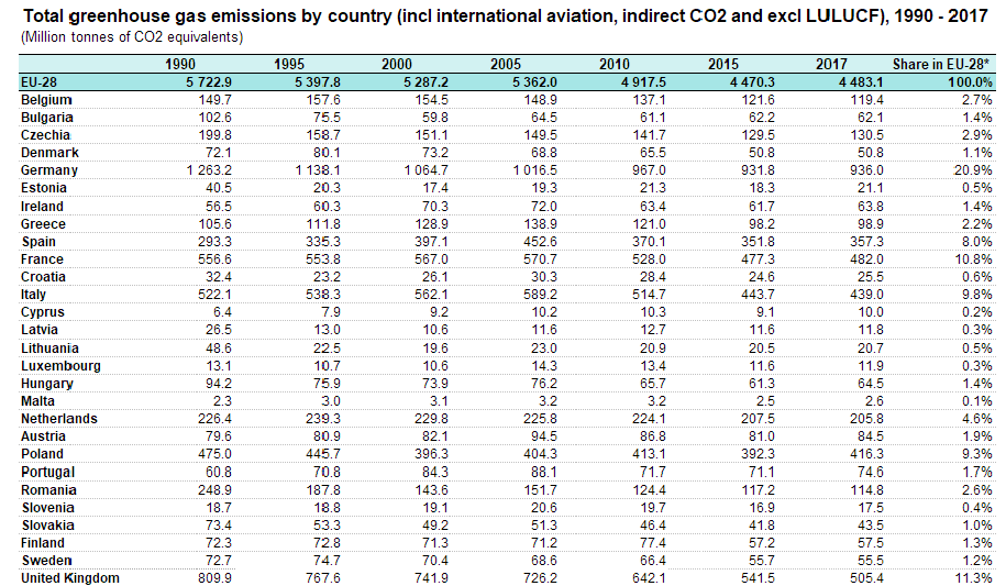 According to the European Statistical Office in Luxembourg, Germany is, by far, the largest carbon emitter in the EU, with a share of almost 21% of the total emissions in the EU-28.