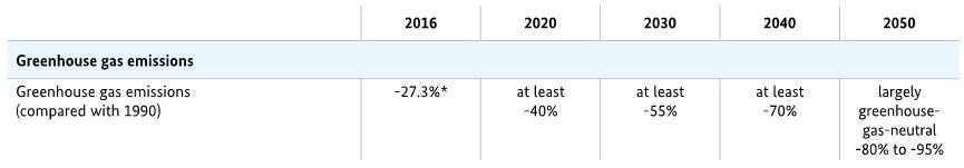 Germany’s climate targets were put on paper in 2007 and have been upheld by all governments since. The 2014 progress report confirmed these 2007 targets, which are subject to an annual monitoring process. In June 2018, the Federal Ministry for Economic Affairs and Energy published the latest monitoring report in which the government set the 2020 emission reduction goal, precisely from the initial 27.3% in 2016 to 40% less greenhouse gases by 2030 compared with 1990, and then progressively -55% by 2030, -70% by 2040 and very ambitiously less than 80% to 95% greenhouse gas emissions by 2050, targets that have remained unchanged up to date. In other words, by the middle of the 21st century, Germany would actually reach carbon neutrality, or have a net zero carbon footprint, by balancing carbon emissions with carbon removal or simply eliminating carbon emissions associated with transportation, energy production, agriculture and industrial processes, and in so doing it would lead the country to a post-carbon economy.