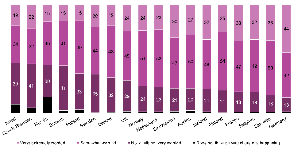 Of these 18 countries, it was no coincidence that the research agency found that Germans are the most concerned, with 44% being “very / extremely worried” about climate change. At the other end of the spectrum, just 15% of Poles and Estonians have the same feelings of worry.