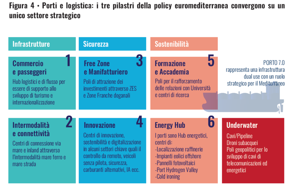 Guardando oltre l’orizzonte attuale, alcune recenti analisi di SRM parlano già di una nuova dimensione “Porto 7.0”, includendo in questa evoluzione il tema underwater: cavi sottomarini per dati ed energia, infrastrutture digitali critiche, sistemi di monitoraggio dei fondali, sicurezza delle reti e nuove attività legate all’economia subacquea. In questo scenario, i porti tendono a configurarsi sempre più come asset geopolitici sensibili, rafforzando ulteriormente il loro ruolo di hub di business, innovazione e investimento nel Mediterraneo e nello spazio euro-globale.