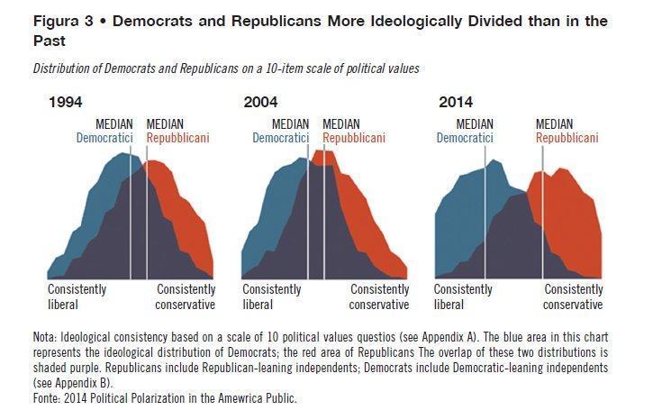 Se però la volatilità elettorale illustrata sopra postula l’assenza di legami identitari e comunitari forti tra elettori e rappresentanza politica, la polarizzazione sembrerebbe invece richiedere l’esistenza di queste connessioni.