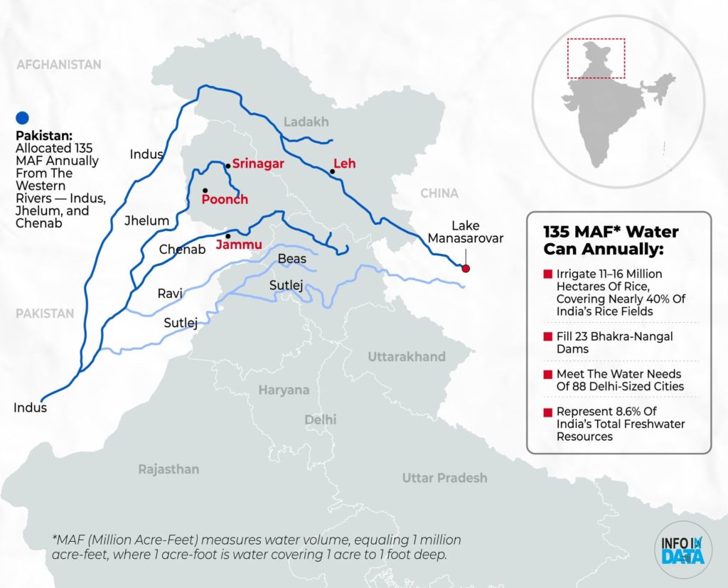 Attualmente, l’India gestisce un vasto sistema di dighe e bacini idrici costruiti a monte dei fiumi contesi, tra cui le dighe di Baglihar e Kishanganga, entrambe situate nel Jammu e Kashmir. Pur essendo autorizzate dal trattato per scopi idroelettrici, queste infrastrutture le conferiscono un potere di regolazione significativo. Il controllo di questo «oro blu» è ormai una leva strategica, facilmente convertibile in arma geopolitica: aprire o chiudere le dighe significa influenzare sicurezza alimentare, produzione energetica e stabilità sociale.