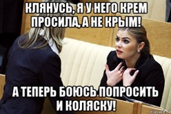 Alina: “Vova (a familiar nickname for Vladimir), I’m pregnant, I need a stroller!”