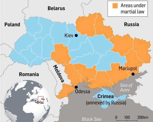 Poroshenko used this situation to declare martial law in the country’s ten regions for 30 days. Martial law had never been introduced in Ukraine even during the heaviest fights between the Ukrainian military and Russian-backed separatists in the country’s east, for instance during the battle of Debaltseve in 2015.  At the beginning, Poroshenko stated that the martial law would last 60 days, covering the election campaign period. Facing strong parliamentary objections, the law was amended.