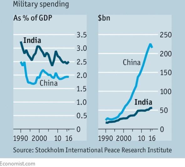 Then there is the second criterion for bipolarity: the gap between China and the rest. It is vast. India is the third-ranking major industrialized country when comparing defense spending. It clocks in at $66.5 billion in expenditures for 2018, 3.7% of global spending, and a 29% increase since 2009. That’s very far below China.